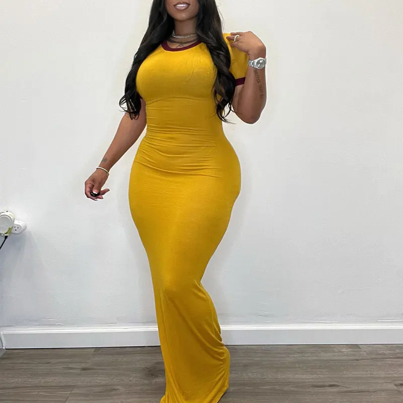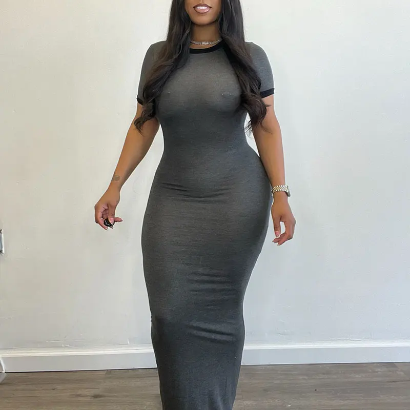 Huili Manufacturer Oem Hiqh Quality Crew Neck Short Sleeve Bodycon Straight Knitted Womens Long Dresses Custom Ribbed Maxi Dress